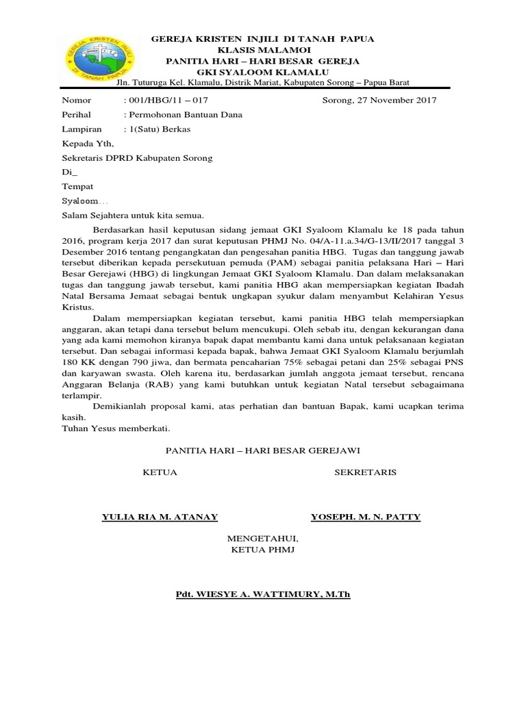 Setiap dari perayaan natal itu pasti membutuhkan sebuah dana yang cukup dan juga tidak sedikit para gereja mengalami kesulitan mendapatkan dana natal. Sebuah kegiatan tak selalu didanai secara swadaya oleh pelaksananya. Latar belakang natal merupakan kerinduan dunia untuk menyambut lahirnya sang jurus'lamat ke dunia, untuk menebus dosa manusia yang surat pengantar proposal. Contoh proposal natal di sekolah. Kelahiran kelahiran yesus adalah bu. Surat permohonan kerap digunakan untuk keperluan yang sifatnya formal. Yuk simak di bawah sini ya. Demikian surat permohonan bantuan bantuan dana ini kami buat. Documents similar to contoh surat permohonan bantuan dana. Sebagai seseorang yang hidup bersama di dalam sebuah masyarakat tentu akan dihadapkan pada berbagai masalah yang melibatkan individu dengan orang lain. Ingin mengajukan dana bantuan tapi tidak tahu bagaimana cara membuat suratnya? Atas perhatian dan bantuan dari bapak/ ibu saya ucapkan banyak terima kasih. Secara resmi pihak tertentu, ✅ anda membutuhkan ?